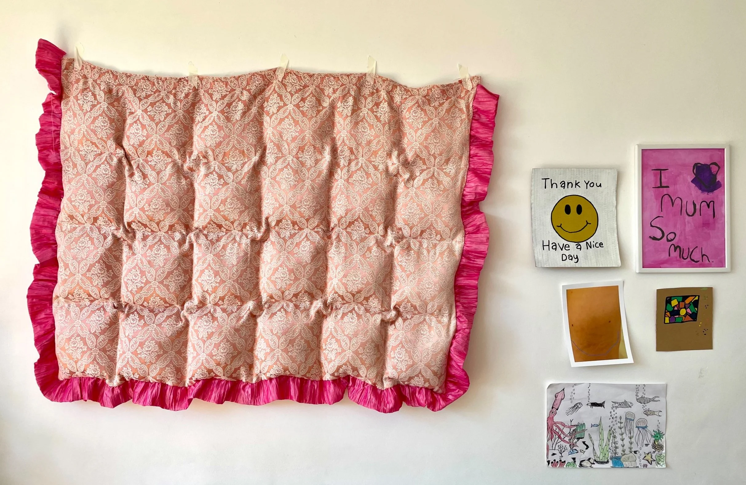 I have never made a duvet before, a duvet cover of course, but never a duvet. I can work out how to. I choose a pink brocade vintage curtain, that is beautiful, again why do I hesitate to cut it up? – *come back to this.